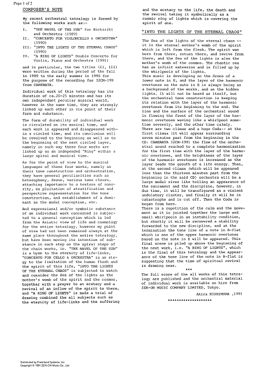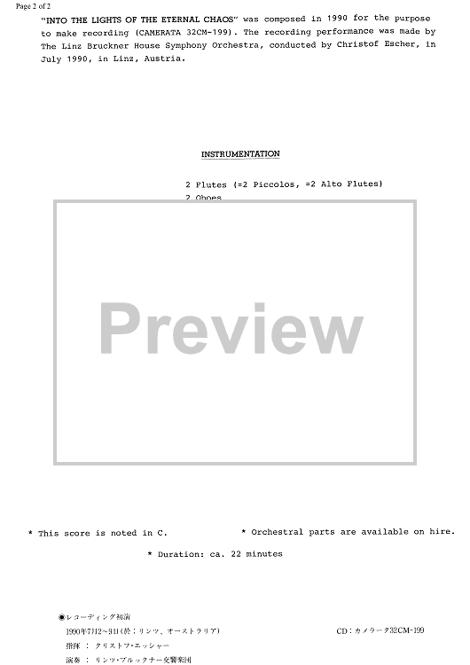 Digital Sheet Music for Into the Lights of Eternal Chaos - Preface by , Akira Nishimura scored for Preface; id:354015