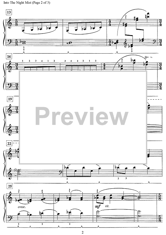 Digital Sheet Music for Into the Night Mist by Wynn-Anne Rossi scored for Piano; id:500733