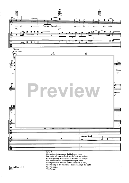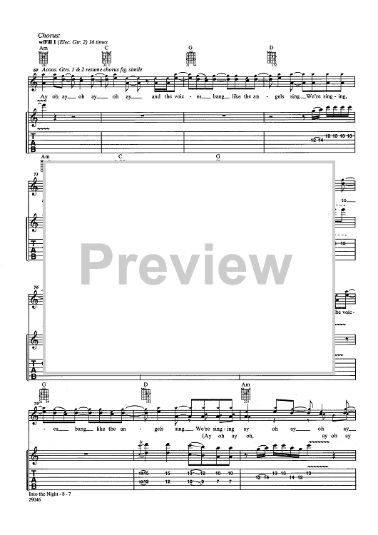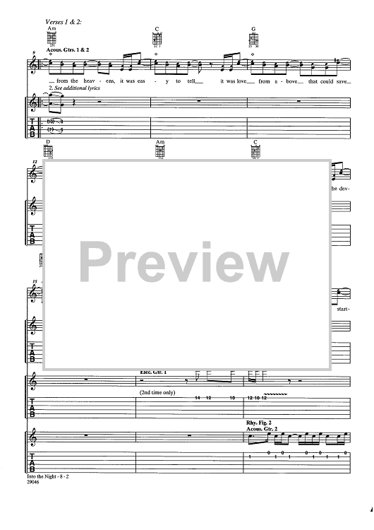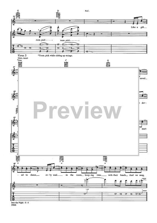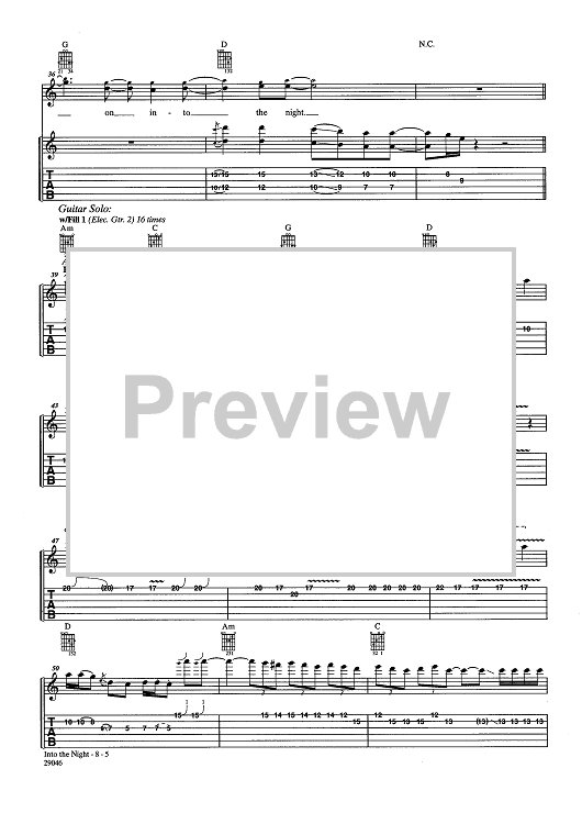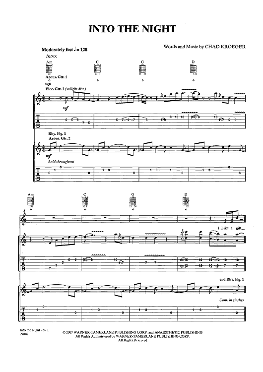 Digital Sheet Music for Into the Night by Chad Kroeger, Santana scored for Guitar Tab/Vocal; id:437554