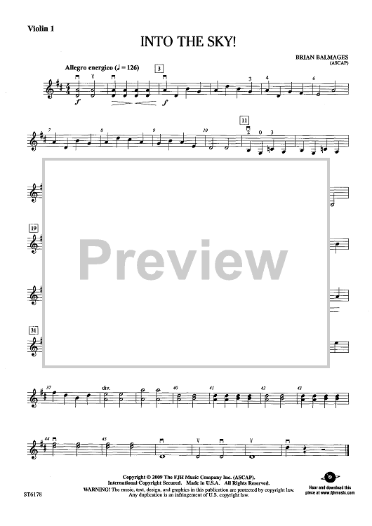 Digital Sheet Music for Into The Sky! - Violin 1 by Brian Balmages scored for String Orchestra; id:441120