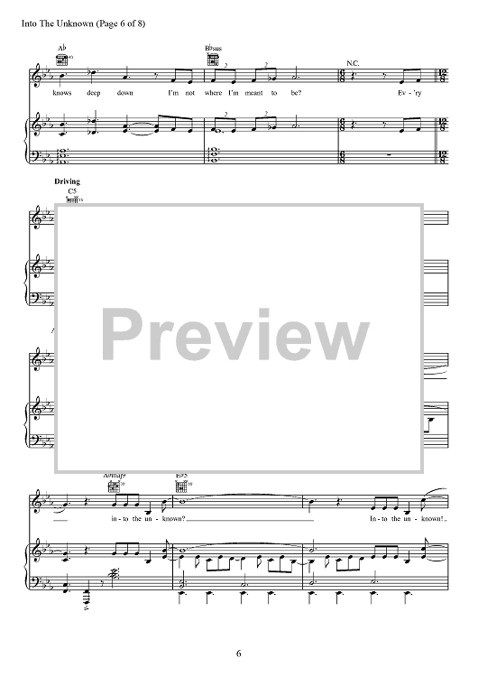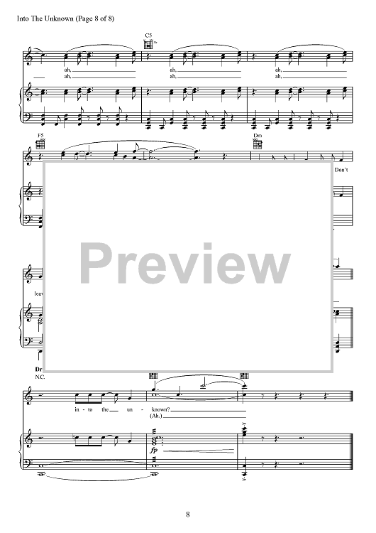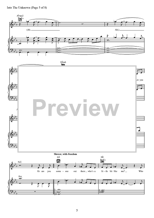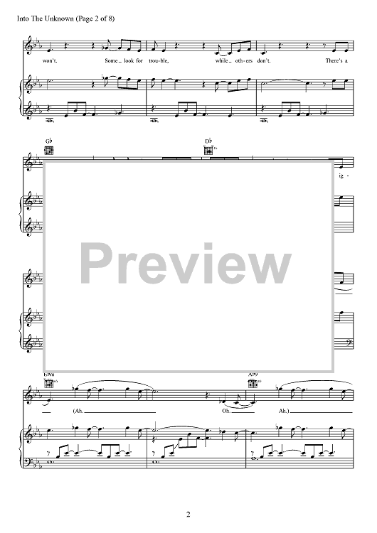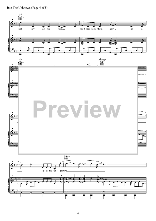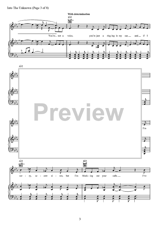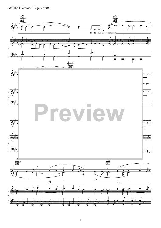 Digital Sheet Music for Into The Unknown from Disney's Frozen 2 by Robert Lopez, Kristen Anderson-Lopez scored for Piano/Vocal/Chords; id:467902