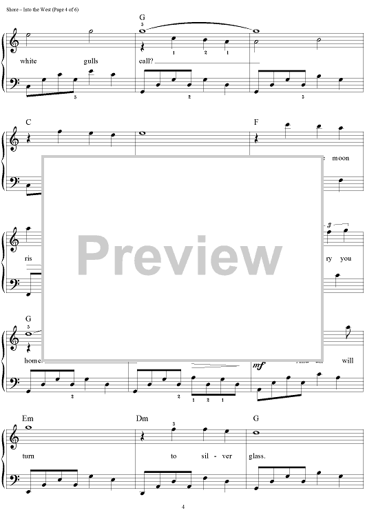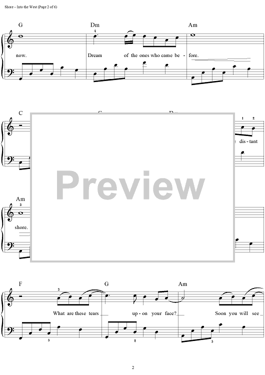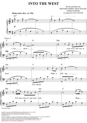 Digital Sheet Music for Into the West by Dan Coates, Annie Lennox, Howard Shore, Fran Walsh scored for Easy Piano/Vocal/Chords; id:362647