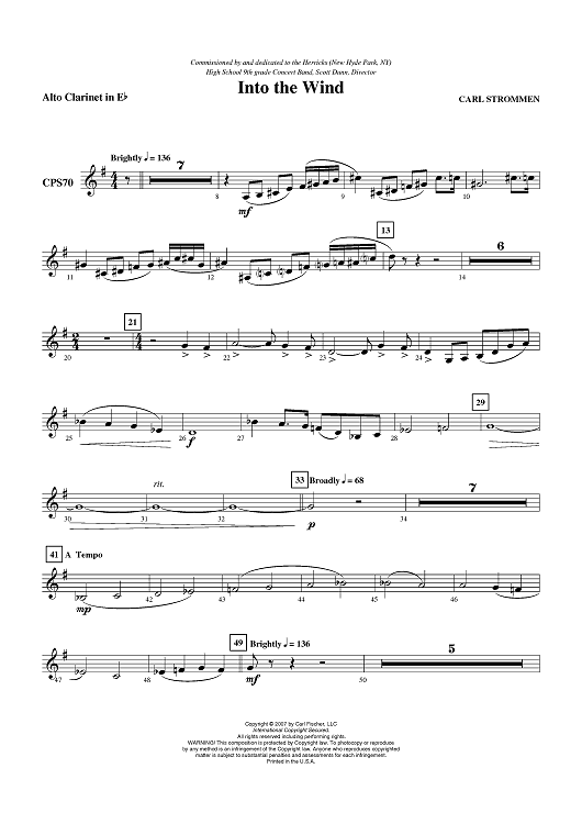 Digital Sheet Music for Into The Wind - Alto Clarinet by Carl Strommen scored for Concert Band; id:407356