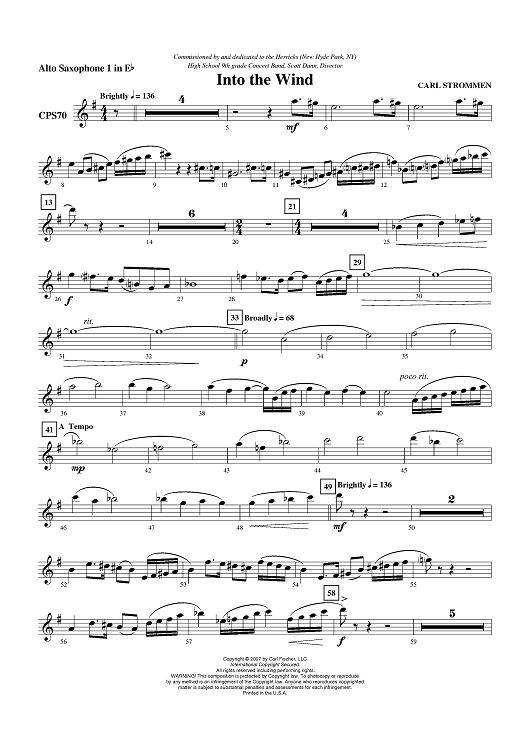 "Into The Wind - Alto Sax 1" Sheet Music by Carl Strommen