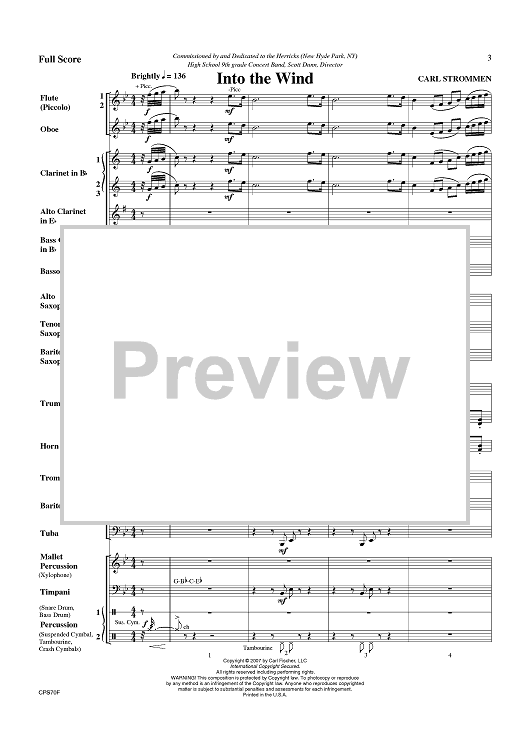 "Into The Wind - Score" Sheet Music by Carl Strommen