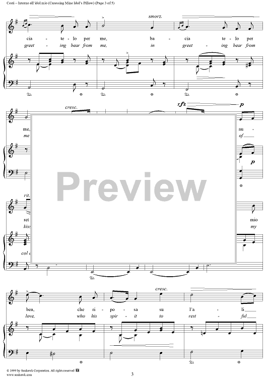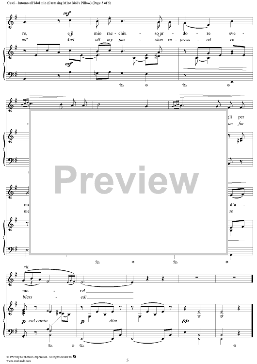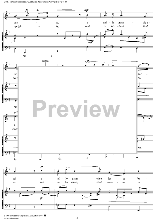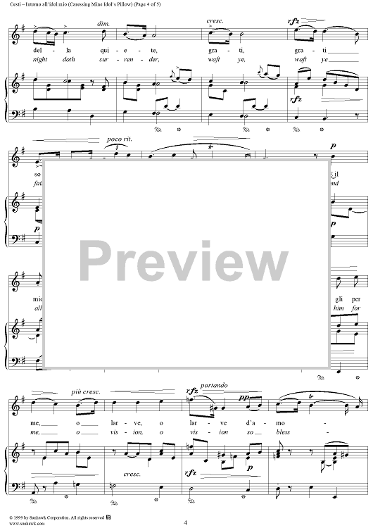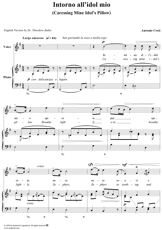 Digital Sheet Music for Intorno all'idol mio (Caressing Mine Idol's Pillow) by Antonio Cesti scored for Voice/Piano; id:271666