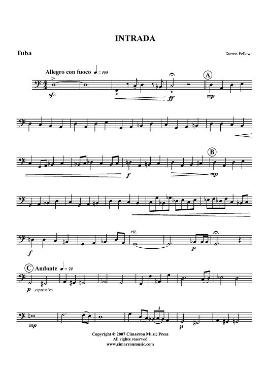"Intrada - Tuba" Sheet Music by Darren Fellows