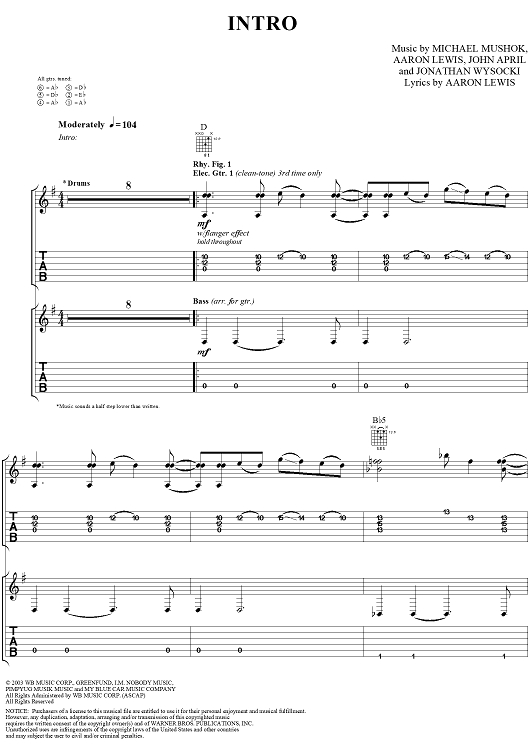 Digital Sheet Music for Intro by Aaron Lewis, Michael Mushok, Jonathan Wysocki, John April, Staind scored for Guitar Tab/Vocal; id:297780