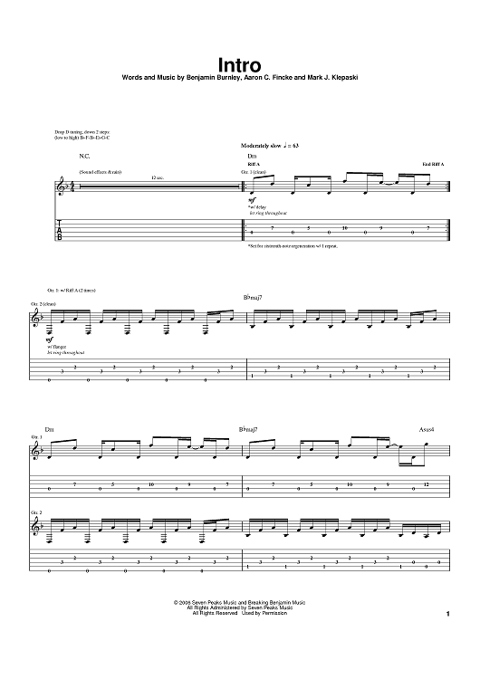 Digital Sheet Music for Intro by Breaking Benjamin, Benjamin Burnley, Aaron Fink, Mark Klepaski scored for Guitar Tab; id:395026