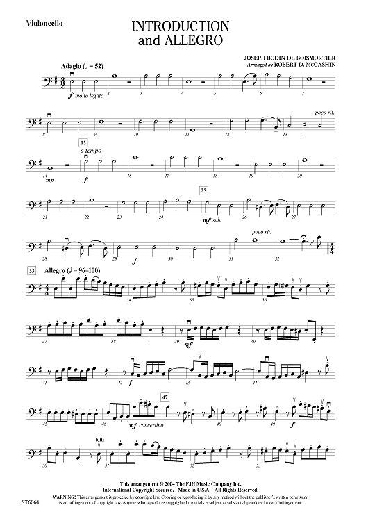 Digital Sheet Music for Introduction and Allegro - Violoncello by Joseph Bodin de Boismortier, Robert D. McCashin scored for String Orchestra; id:501371