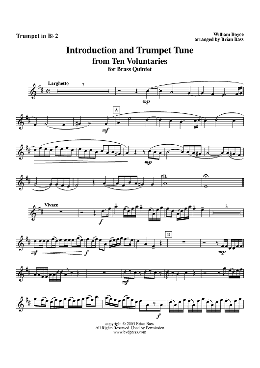 "Introduction and Trumpet Tune from Ten Voluntaries - Trumpet 2" Sheet Music by William Boyce