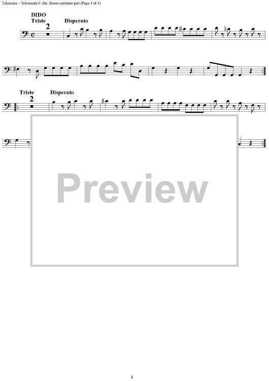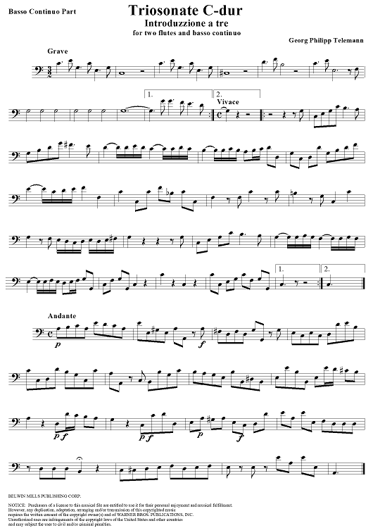 "Introduzzione a tre - Basso Continuo" Sheet Music by Georg Philipp Telemann