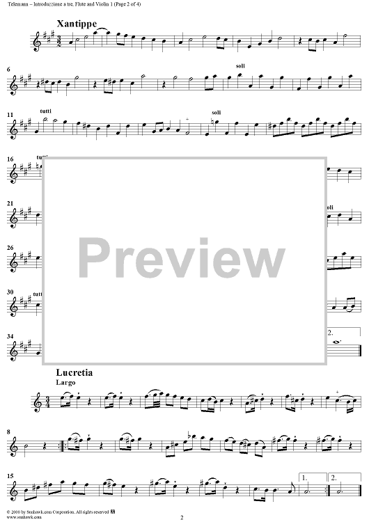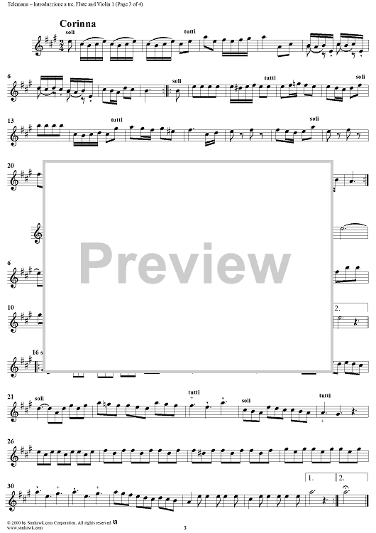 "Introduzzione à Tre - Flute 1/Violin 1" Sheet Music by Georg Philipp Telemann