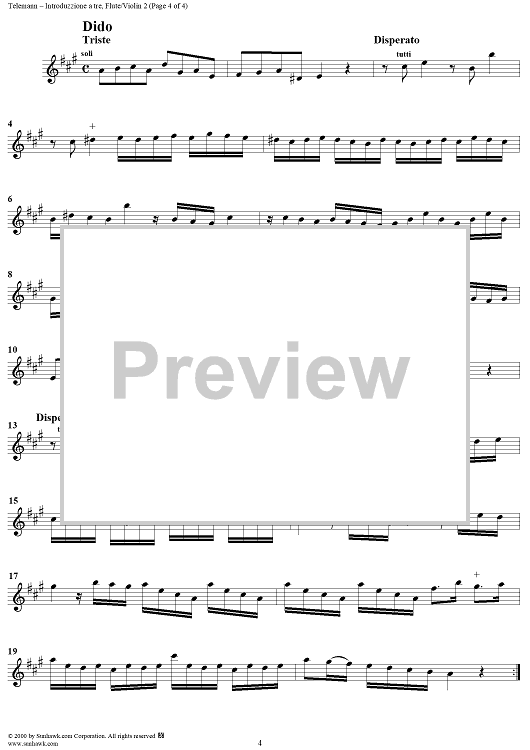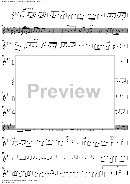 "Introduzzione à Tre - Flute 2/Violin 2" Sheet Music by Georg Philipp Telemann