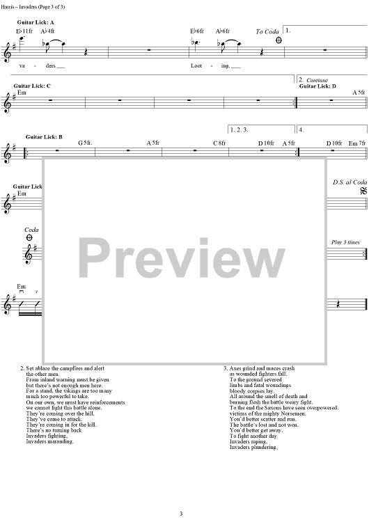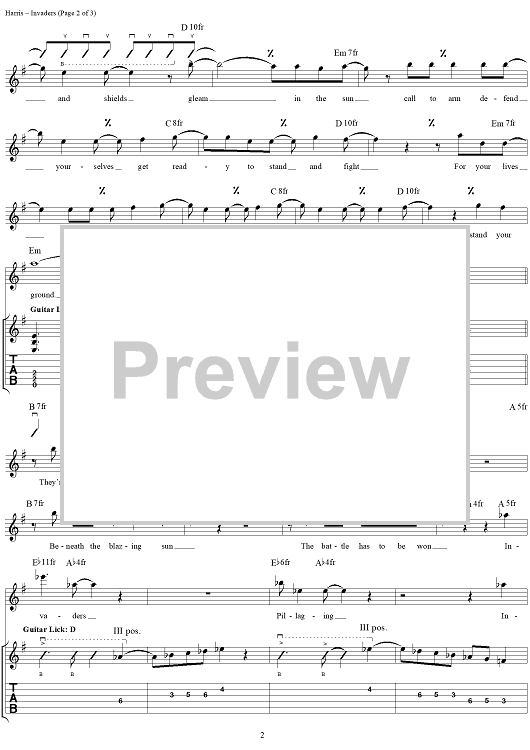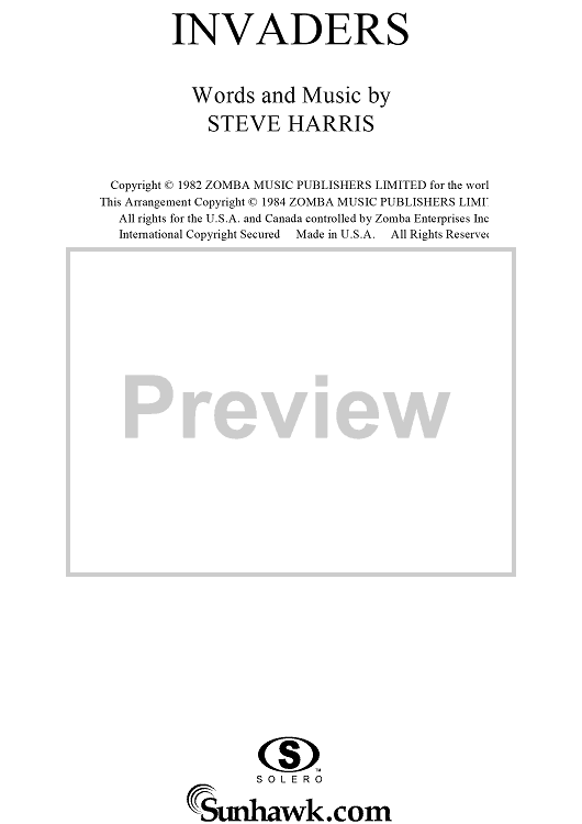 Digital Sheet Music for Invaders by Steve Harris, Iron Maiden scored for Guitar Tab/Vocal; id:113619