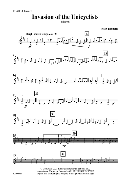 Digital Sheet Music for Invasion of the Unicyclists - Eb Alto Clarinet by Kelly Bennette scored for Concert Band; id:509502