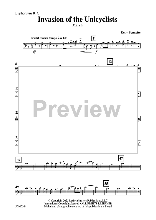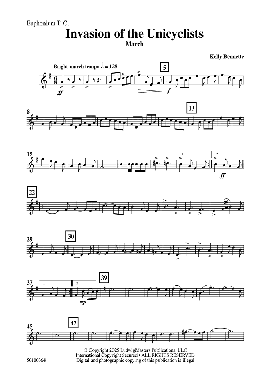 Digital Sheet Music for Invasion of the Unicyclists - Euphoniums TC/BC by Kelly Bennette scored for Concert Band; id:509516
