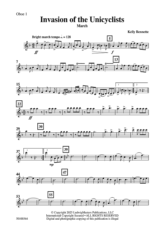 "Invasion of the Unicyclists - Oboe 1" Sheet Music by Kelly Bennette