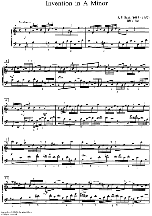 "Invention in A Minor [BWV 784]" Sheet Music by Johann Sebastian Bach