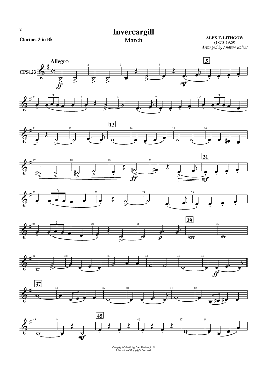 Digital Sheet Music for Invercargill (March) - Clarinet 3 in Bb by Andrew Balent, Alex F. Lithgow scored for Concert Band; id:430490