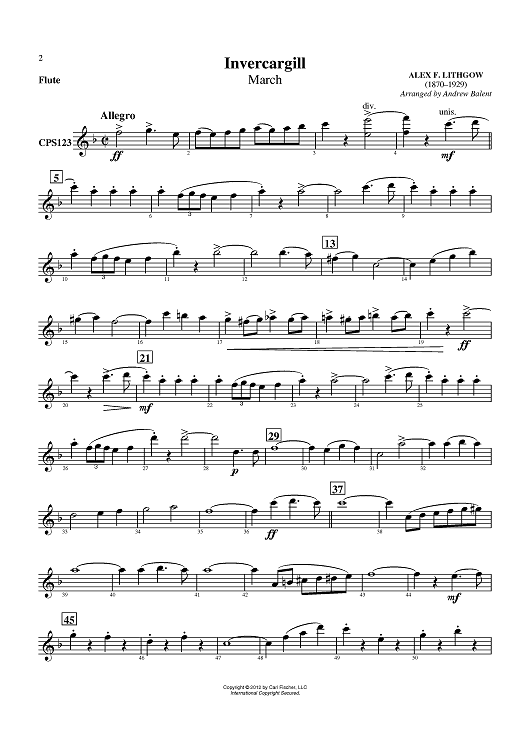 "Invercargill (March) - Flute" Sheet Music by Alex F. Lithgow