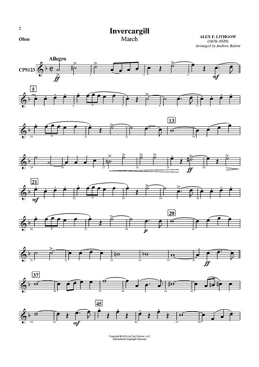 "Invercargill (March) - Oboe" Sheet Music by Alex F. Lithgow
