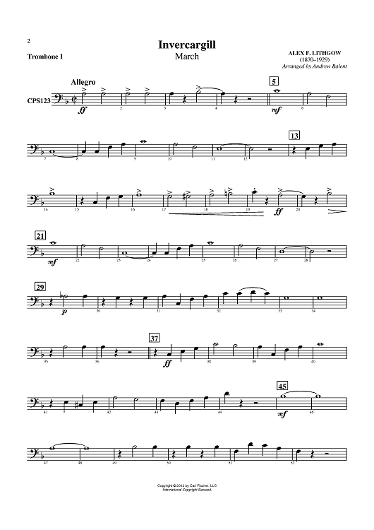 Digital Sheet Music for Invercargill (March) - Trombone 1 by Andrew Balent, Alex F. Lithgow scored for Concert Band; id:430502