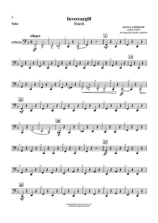 "Invercargill (March) - Tuba" Sheet Music by Alex F. Lithgow