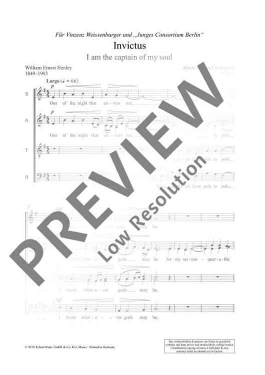 "Invictus - Choral Score" Sheet Music by Alwin Michael Schronen