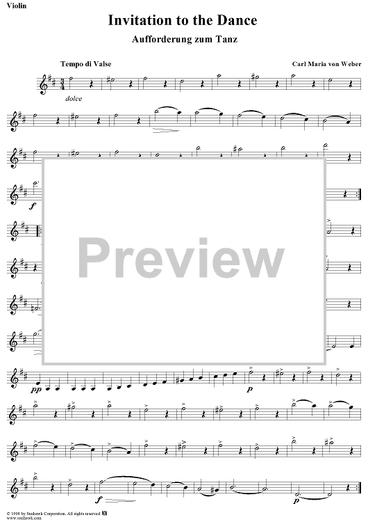 "Invitation to the Dance - Violin" Sheet Music by Carl Maria Von Weber