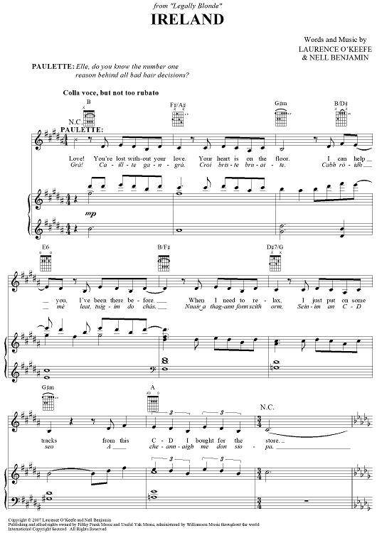 Digital Sheet Music for Ireland by Laurence O'Keefe, Nell Benjamin scored for Piano/Vocal/Chords; id:405157