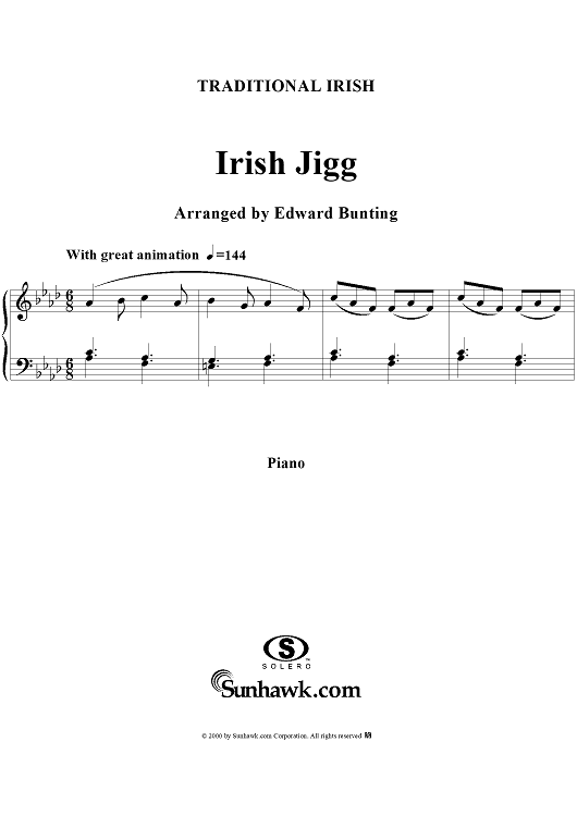 Digital Sheet Music for Irish Jigg by , Edward Bunting, Traditional scored for Piano Solo; id:234650