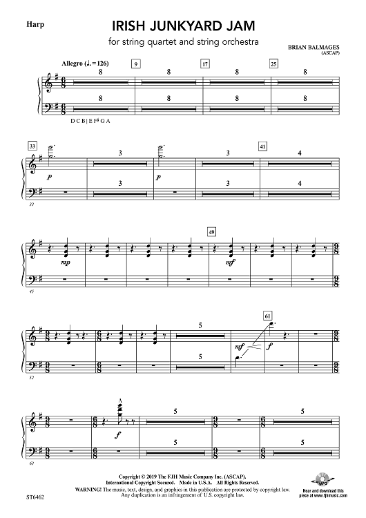 "Irish Junkyard Jam for string quartet and string orchestra - Harp" Sheet Music by Brian Balmages