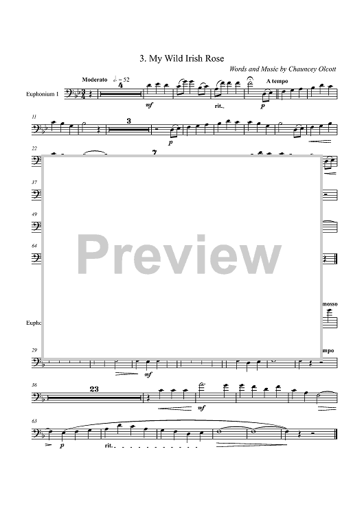 "Irish Popular Song Suite - Euphonium 1 BC" Sheet Music by Traditional