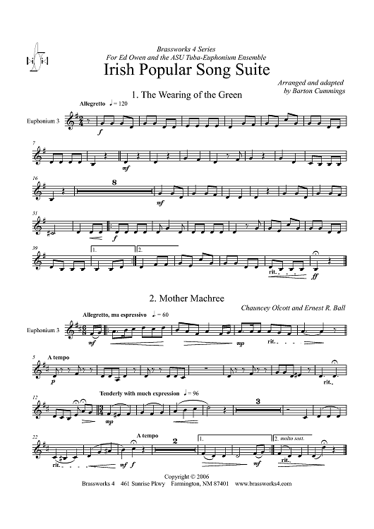 Digital Sheet Music for Irish Popular Song Suite - Euphonium 3 BC by Traditional, Barton Cummings scored for Tuba/Euphonium Choir; id:320109