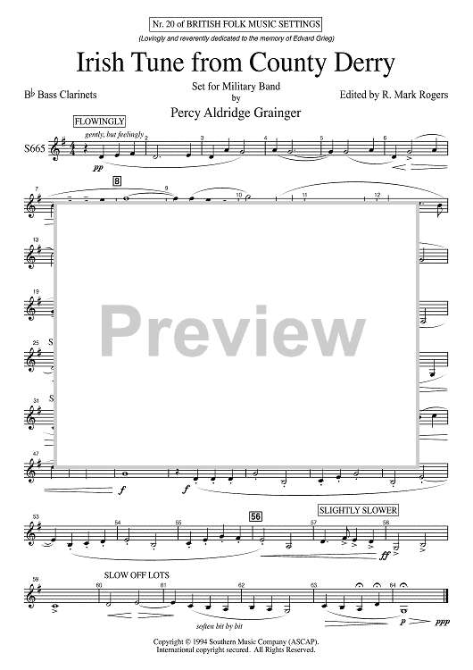 "Irish Tune from County Derry - Bb Bass Clarinet" Sheet Music by Percy Grainger