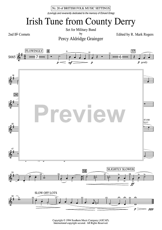 Digital Sheet Music for Irish Tune from County Derry - Bb Cornet 2 by Percy Grainger scored for Concert Band; id:502803