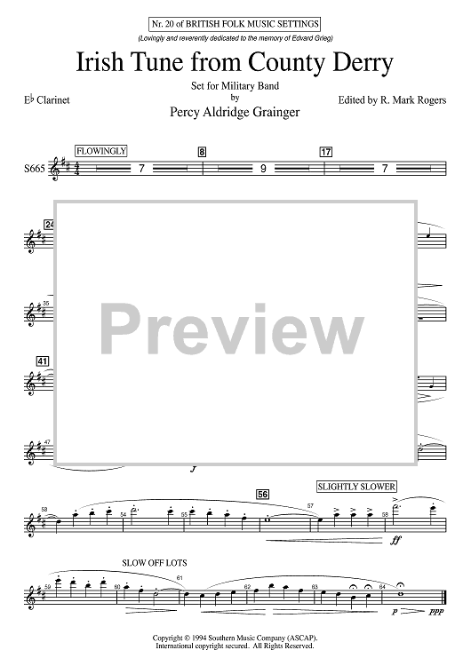 "Irish Tune from County Derry - Eb Clarinet" Sheet Music by Percy Grainger