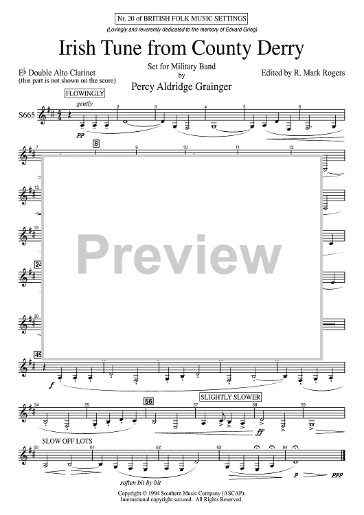 Digital Sheet Music for Irish Tune from County Derry - Eb Contra Alto Clarinet by Percy Grainger scored for Concert Band; id:502795