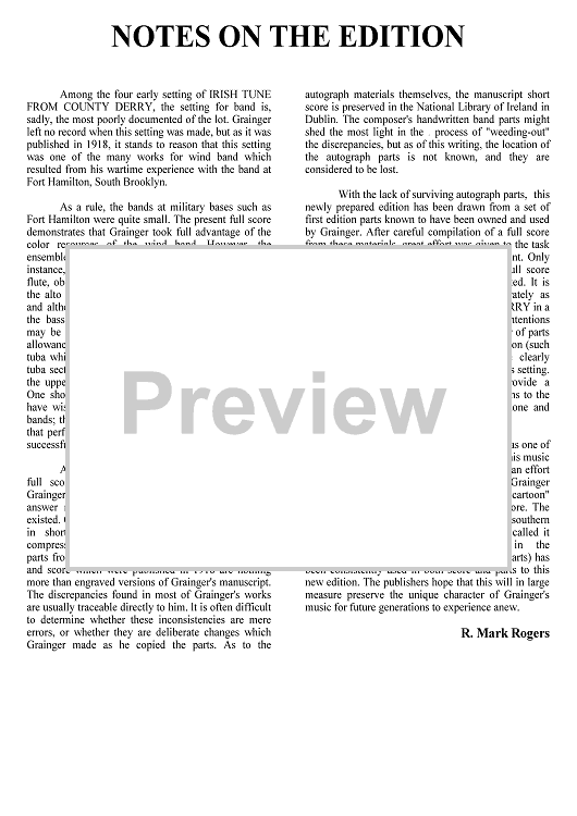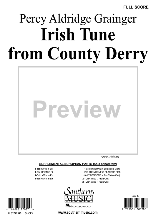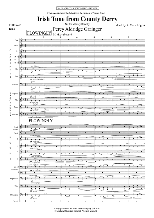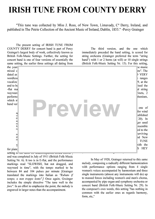 Digital Sheet Music for Irish Tune from County Derry - Full Score by Percy Grainger scored for Concert Band; id:502785