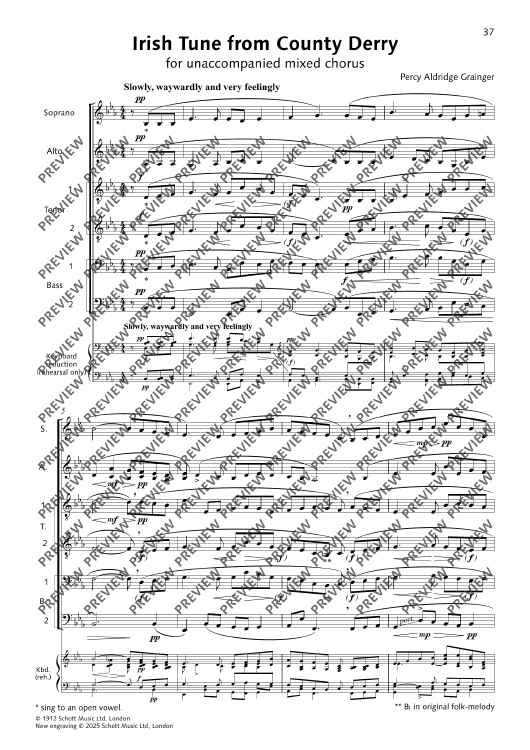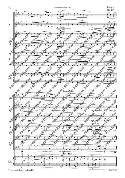 Digital Sheet Music for Irish tune from County Derry by George Percy Aldridge Grainger scored for Mixed Choir (sattbb) A Cappella; id:510685