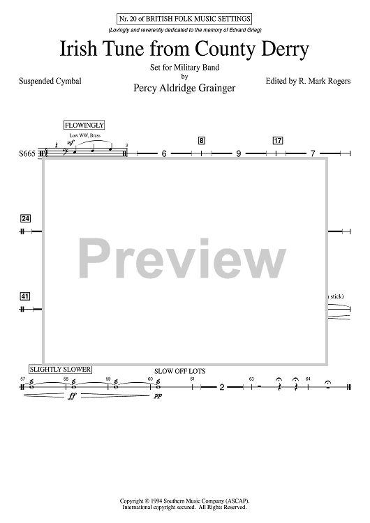 Digital Sheet Music for Irish Tune from County Derry - Suspended Cymbal by Percy Grainger scored for Concert Band; id:502816