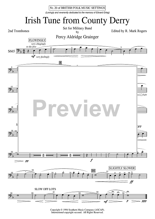 "Irish Tune from County Derry - Trombone 2" Sheet Music by Percy Grainger