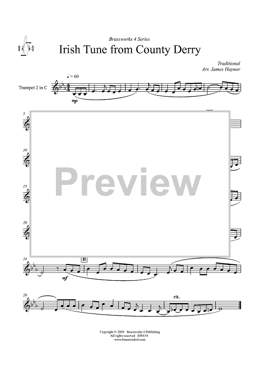 Digital Sheet Music for Irish Tune From County Derry - Trumpet 2 in C by Traditional, James Haynor scored for Brass Quintet; id:411159