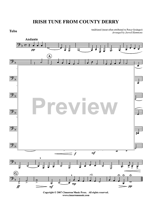 Digital Sheet Music for Irish Tune from County Derry - Tuba by , Traditional, Jarrod Hammons scored for Brass Quintet; id:365656