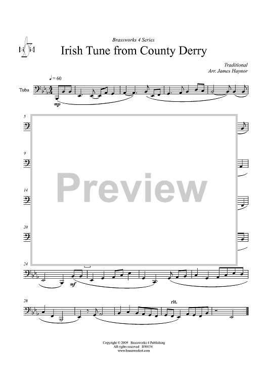 Digital Sheet Music for Irish Tune From County Derry - Tuba by Traditional, James Haynor scored for Brass Quintet; id:411162