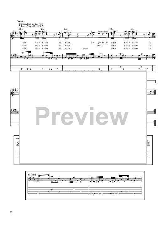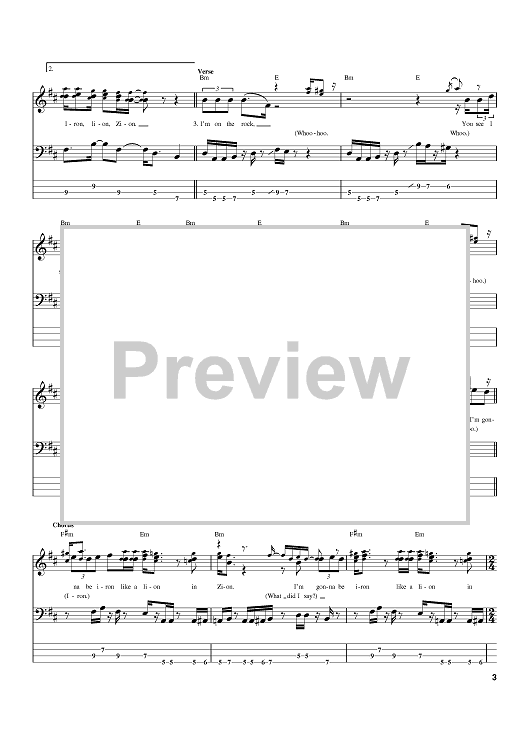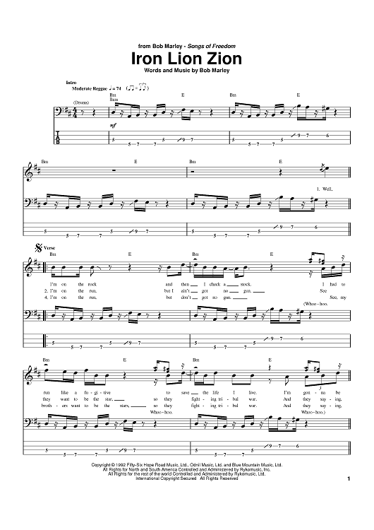 Digital Sheet Music for Iron Lion Zion by Bob Marley scored for Bass Tab; id:371301
