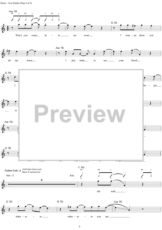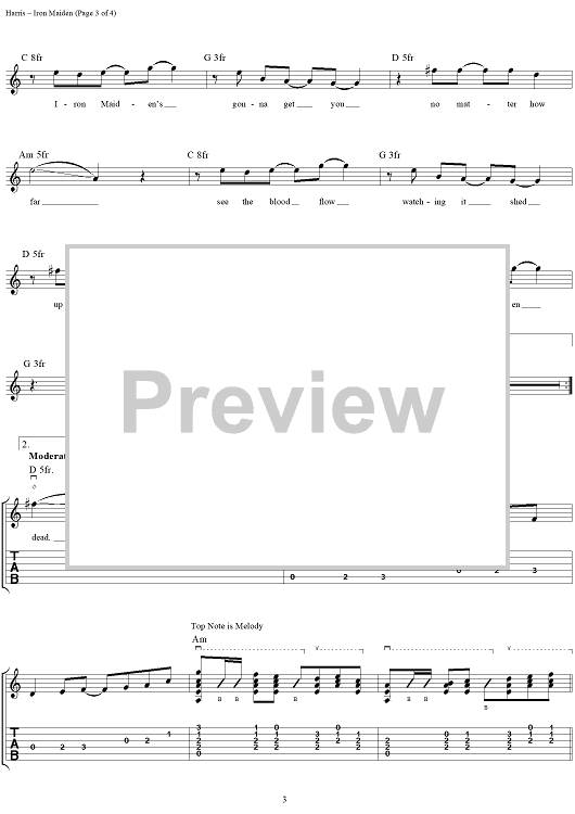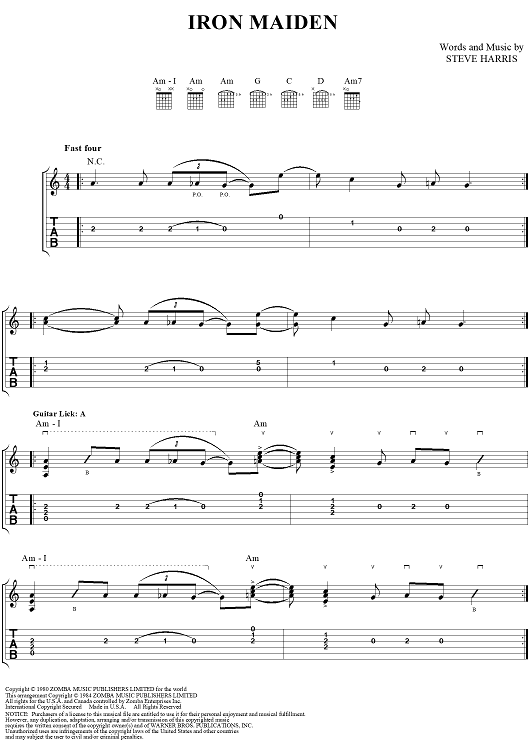 Digital Sheet Music for Iron Maiden by Steve Harris, Iron Maiden scored for Guitar Tab/Vocal; id:112982