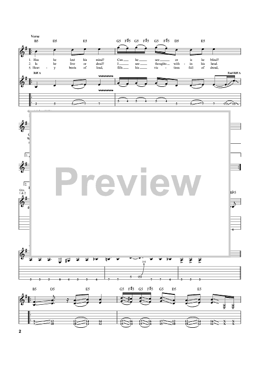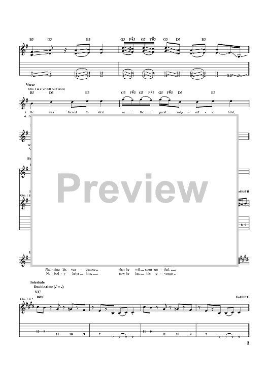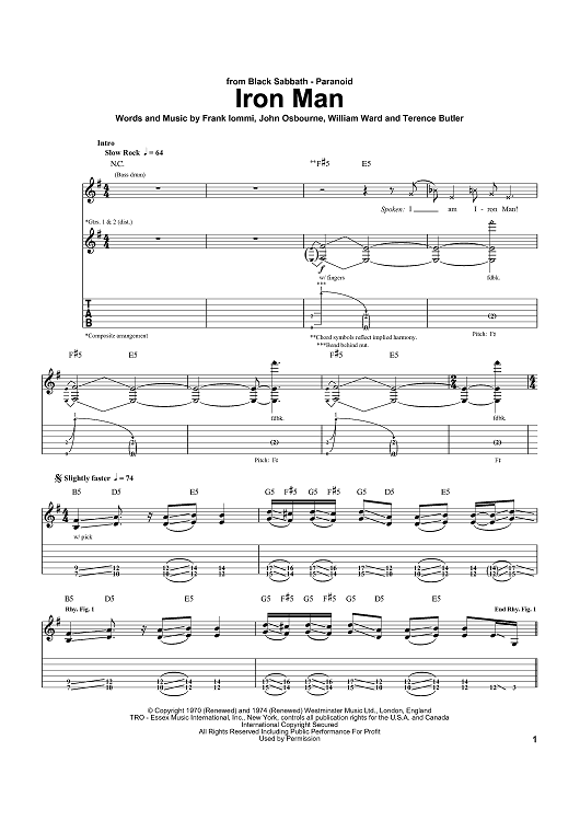 Digital Sheet Music for Iron Man by Black Sabbath, Geezer Butler, Tony Iommi, Ozzy Osbourne scored for Guitar Tab; id:369251