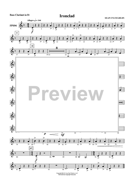 Digital Sheet Music for Ironclad - Bass Clarinet in Bb by Sean O'Loughlin scored for Concert Band; id:420511